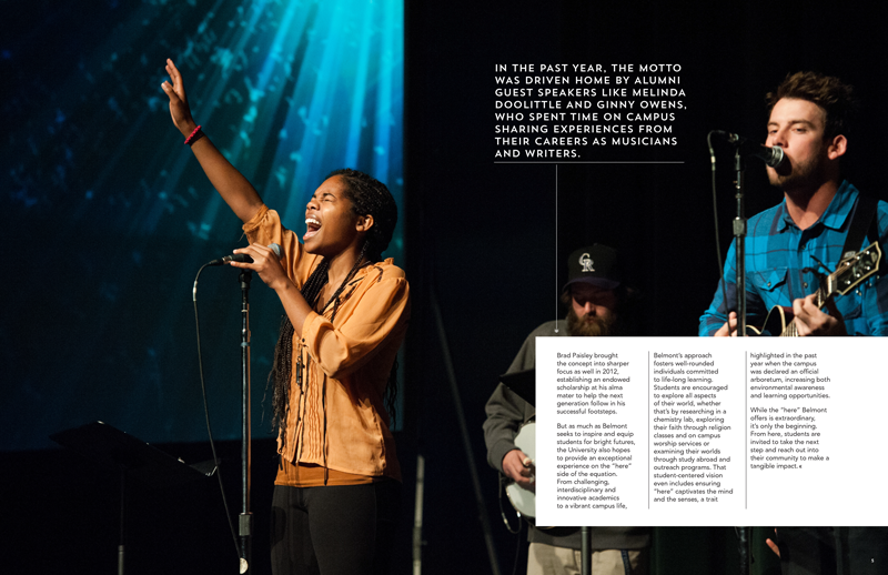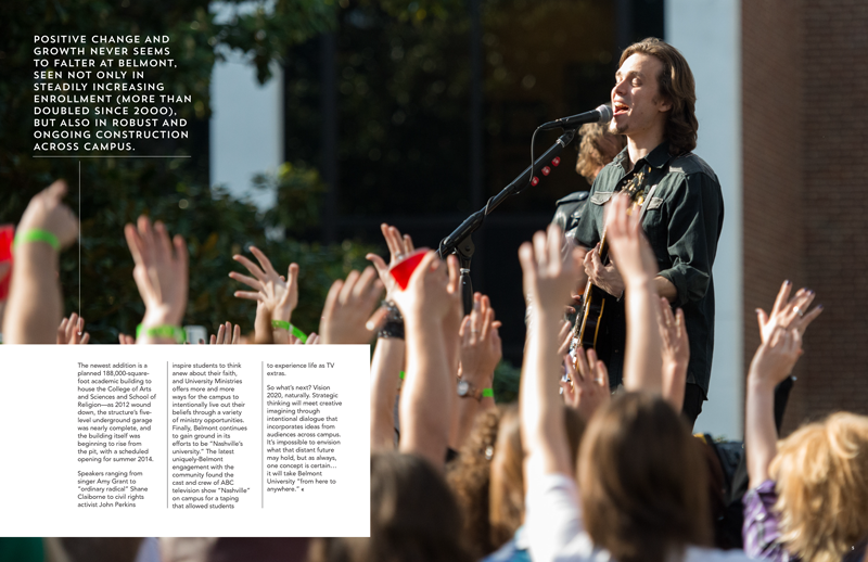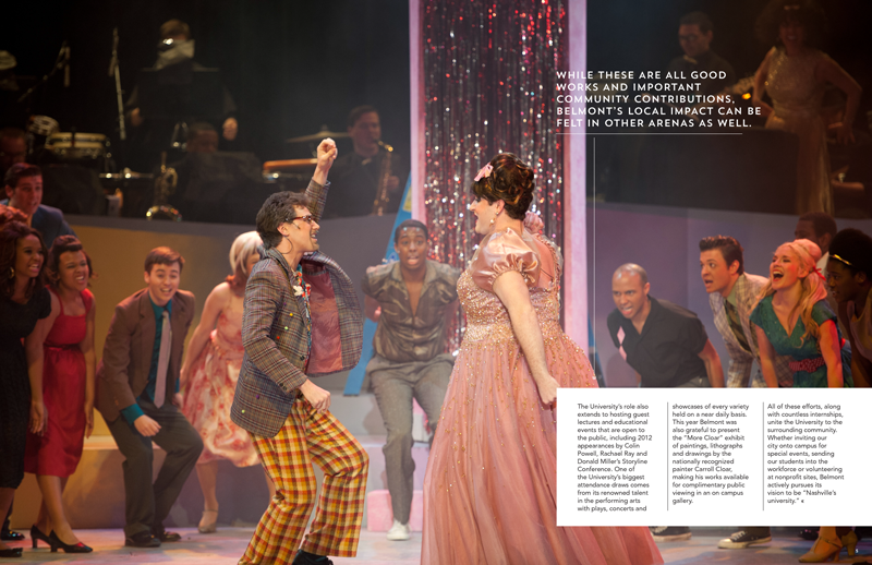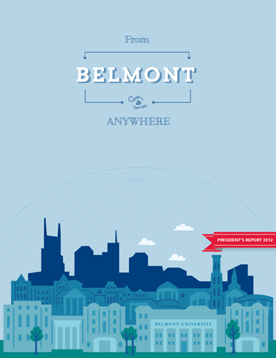 This 2012 President's Preport was created by the in-house design team at Belmont University. Creative Direction: April Maglothin Graphic Design: Sara Spencer, Glenda Dahlhauser, Natalie Smith Illustration: Michelle Rosenthal